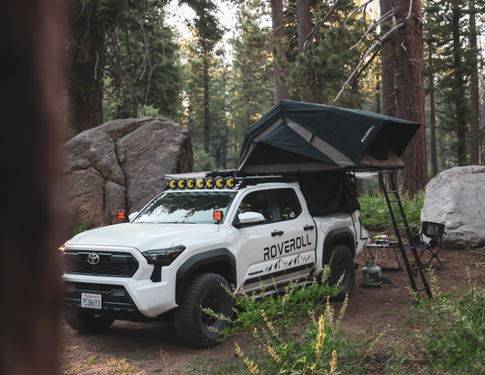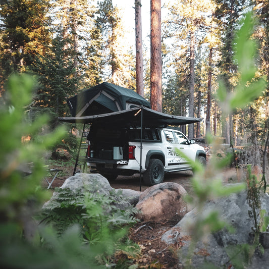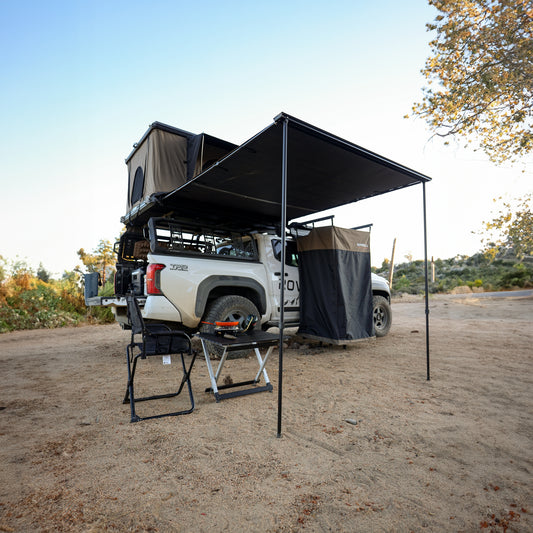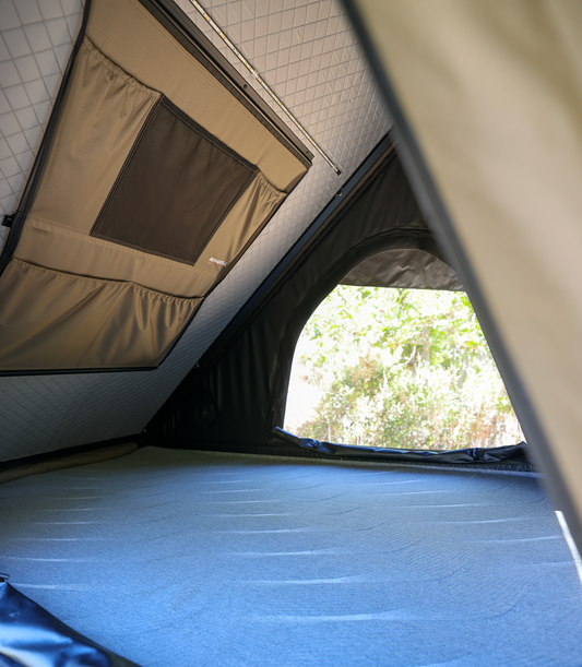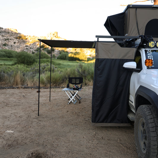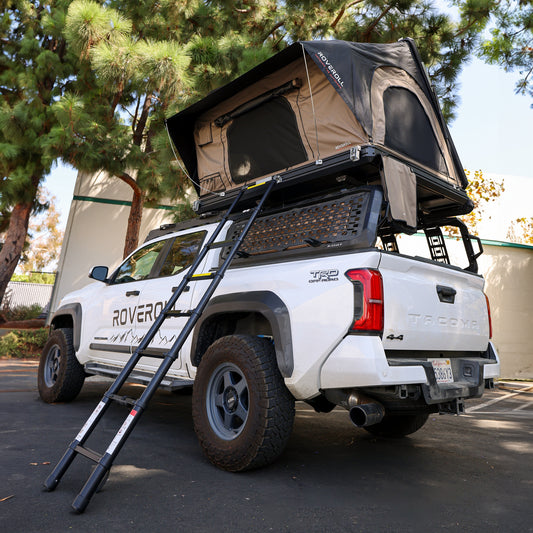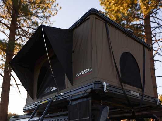 Roveroll Aluminum Side Opening Roof Top Tent-Taupe Body & Black Rain Fly